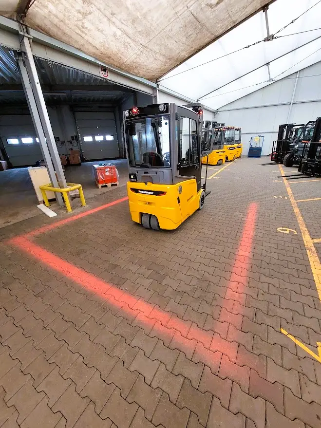 Die Sicherheit des Fahrers und der Personen in der Nähe eines fahrenden Gabelstaplers ist von entscheidender Bedeutung. Zu diesem Zweck werden verschiedene Warnleuchten eingesetzt, die auf ein herannahendes Fahrzeug hinweisen. Die Spot-Light-Lampe projiziert einen blauen oder roten Lichtpunkt hinter oder vor den Stapler und signalisiert so ein heranfahrendes Fahrzeug. Dies ist besonders wichtig in engen Durchfahrten mit eingeschränkter Sicht, da sie Fußgängern in der Nähe eine klare Warnung gibt, vorsichtig zu sein.Die Zone-Light-Lampen hingegen werfen rote Linien um den Stapler herum und markieren so eine Sicherheitszone um die manövrierende Maschine. Ein weiteres wichtiges Sicherheitsmerkmal sind Rückfahrsignale, die in mehreren Varianten erhältlich sind: akustische Signalgeber mit zwei Lautstärkestufen sowie ein adaptiver Signalgeber, der ein weißes Rauschen erzeugt und die Lautstärke automatisch an den Umgebungsgeräuschpegel anpasst. Dadurch bleibt das Signal stets deutlich hörbar, ohne störend zu wirken.Dank dieser Lösungen wird die Arbeit mit Gabelstaplern ergonomischer und sicherer, was sowohl den Komfort des Fahrers als auch den Schutz der umstehenden Personen erheblich verbessert.