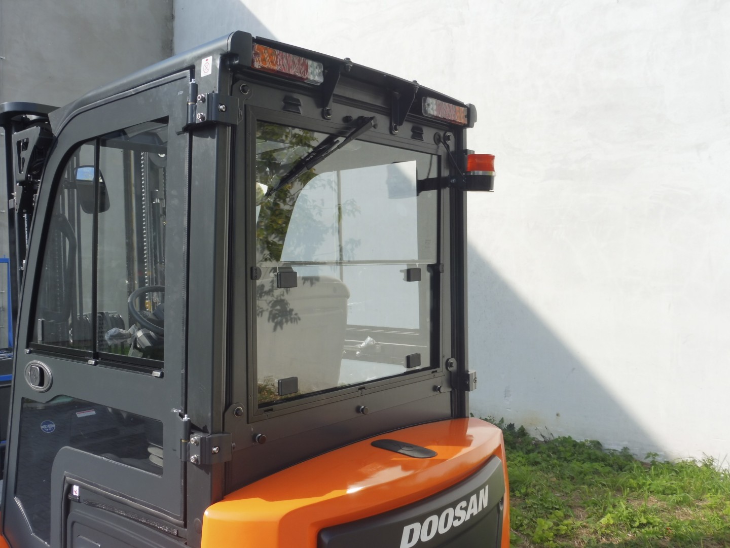 Die Kabine für dieses Gabelstaplermodell ist eine moderne Lösung, die Leichtigkeit der Konstruktion mit einer großen Glasfläche kombiniert, was hervorragende Sicht und Arbeitskomfort unter allen Wetterbedingungen garantiert. Das ergonomische Design, langlebige Materialien und präzise Verarbeitung sorgen dafür, dass die Kabine nicht nur Sicherheit bietet, sondern auch höchsten Komfort, selbst in den anspruchsvollsten Umgebungen.