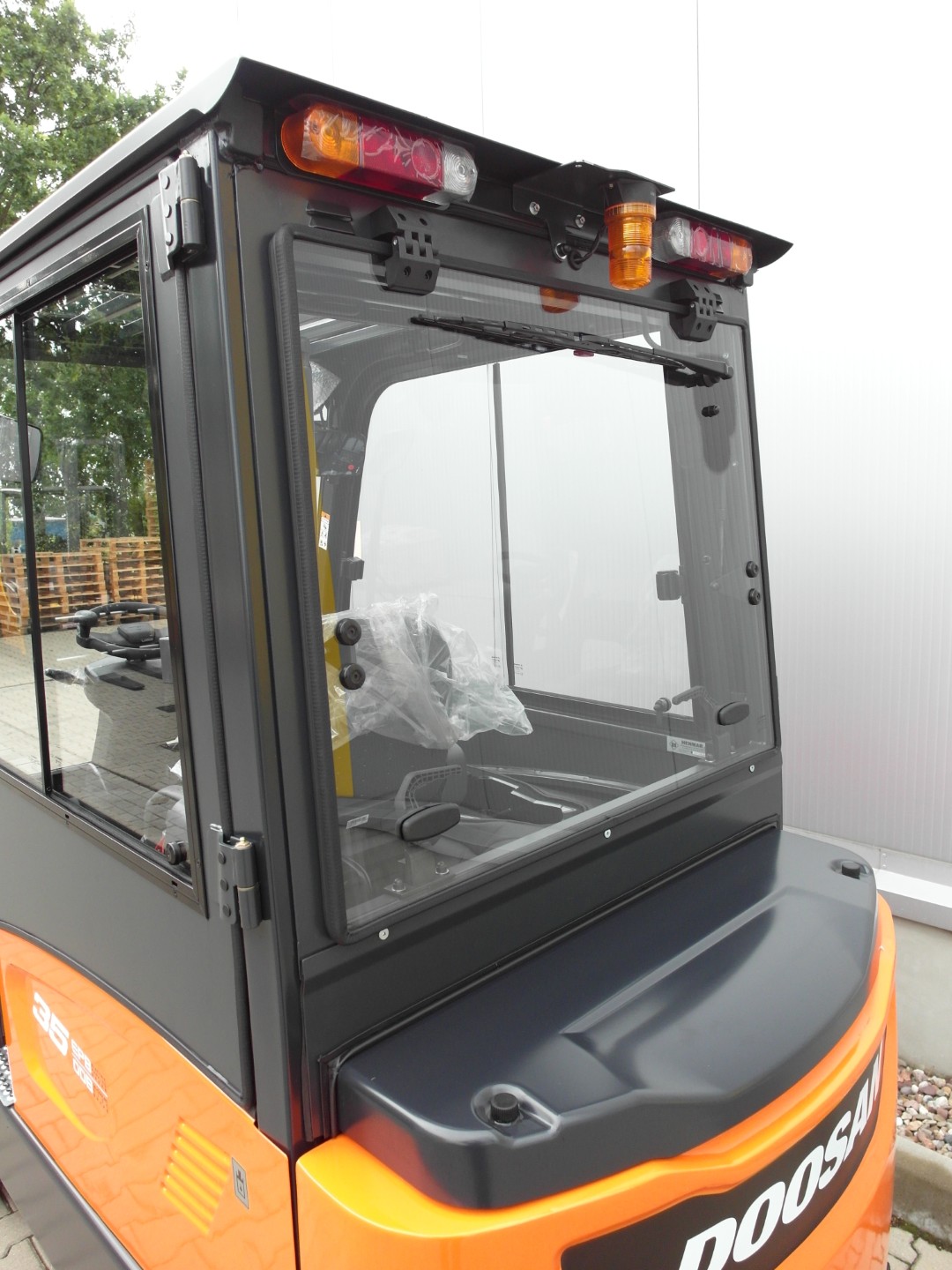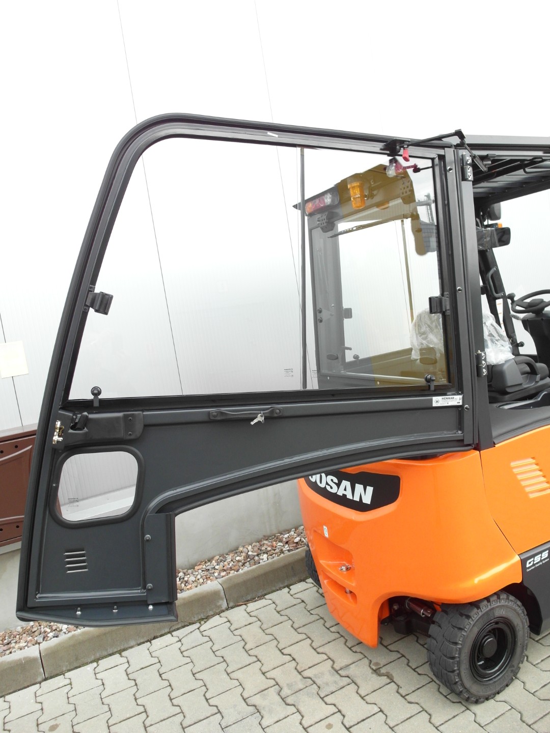 Die Kabine für dieses Gabelstaplermodell ist eine moderne Lösung, die Leichtigkeit der Konstruktion mit einer großen Glasfläche kombiniert, was hervorragende Sicht und Arbeitskomfort unter allen Wetterbedingungen garantiert. Das ergonomische Design, langlebige Materialien und präzise Verarbeitung sorgen dafür, dass die Kabine nicht nur Sicherheit bietet, sondern auch höchsten Komfort, selbst in den anspruchsvollsten Umgebungen.