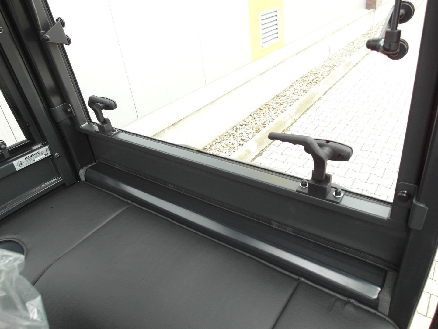 Die Frontscheibe der Kabine besteht aus gehärtetem Glas, das mit einer Sicherheitsfolie beschichtet ist, was dem Fahrer maximalen Schutz bietet. Im Falle einer Beschädigung zerfällt sie nicht in kleine Fragmente, sondern behält ihre Form bei, wodurch das Verletzungsrisiko für den Fahrer minimiert wird.