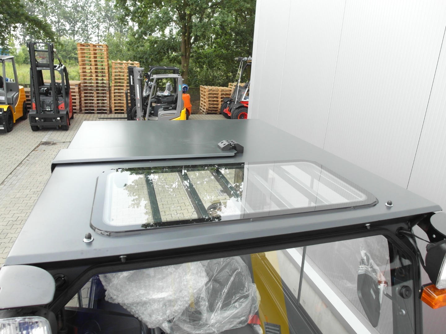 Das Dachfenster der Kabine besteht aus gehärtetem Glas, das mit einer Sicherheitsfolie beschichtet ist, was dem Fahrer maximalen Schutz bietet. Im Falle einer Beschädigung zerfällt es nicht in kleine Fragmente, sondern behält seine Form bei, wodurch das Verletzungsrisiko für den Fahrer minimiert wird.