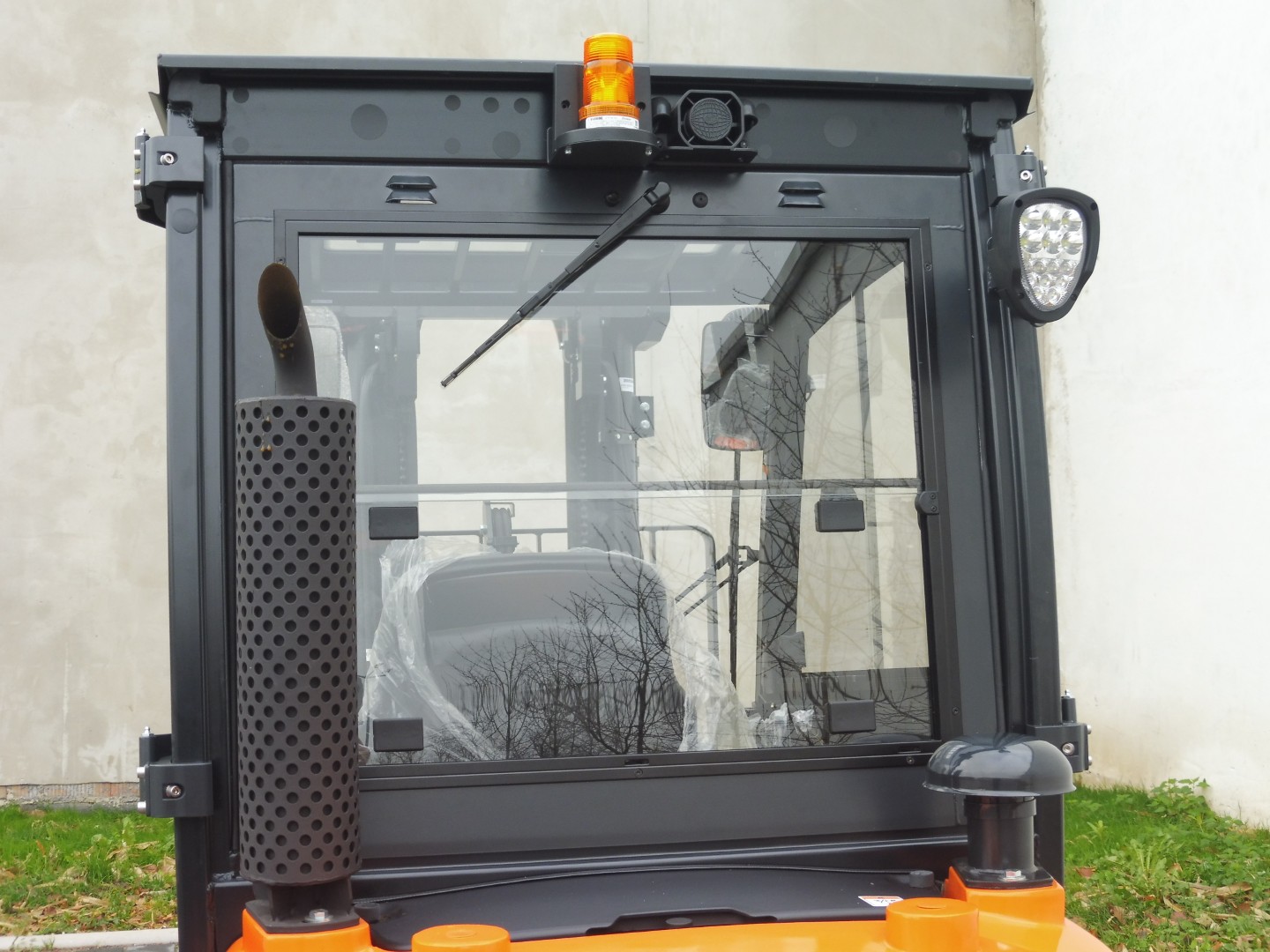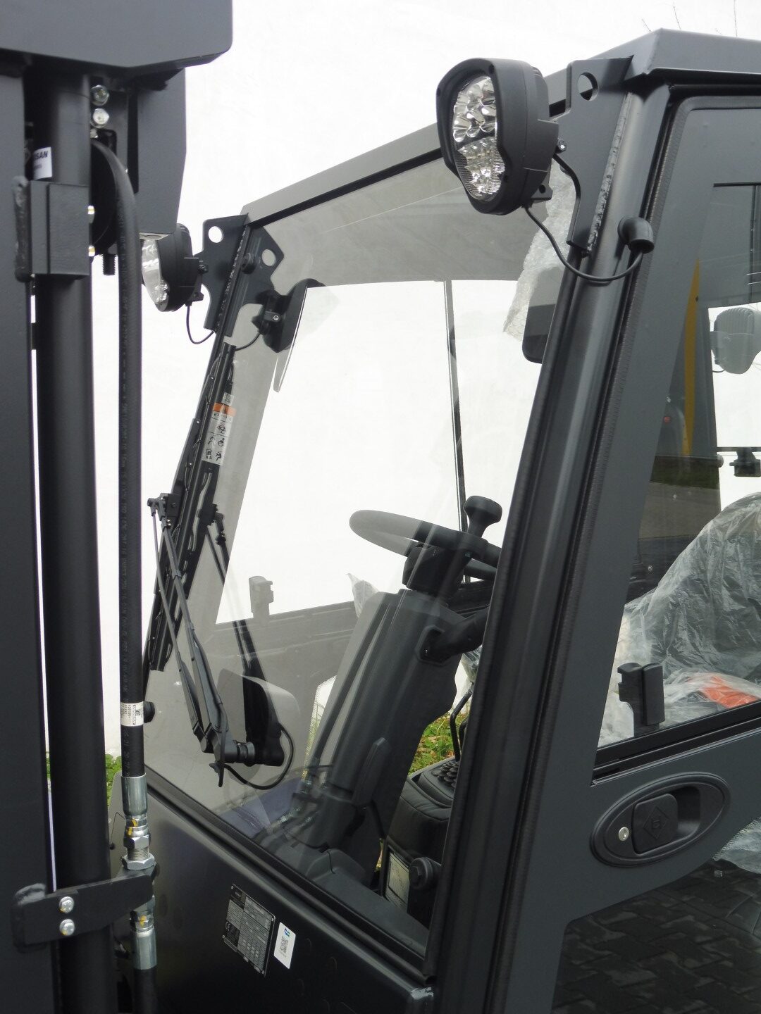 Die Kabine für dieses Gabelstaplermodell ist eine moderne Lösung, die Leichtigkeit der Konstruktion mit einer großen Glasfläche kombiniert, was hervorragende Sicht und Arbeitskomfort unter allen Wetterbedingungen garantiert. Das ergonomische Design, langlebige Materialien und präzise Verarbeitung sorgen dafür, dass die Kabine nicht nur Sicherheit bietet, sondern auch höchsten Komfort, selbst in den anspruchsvollsten Umgebungen.