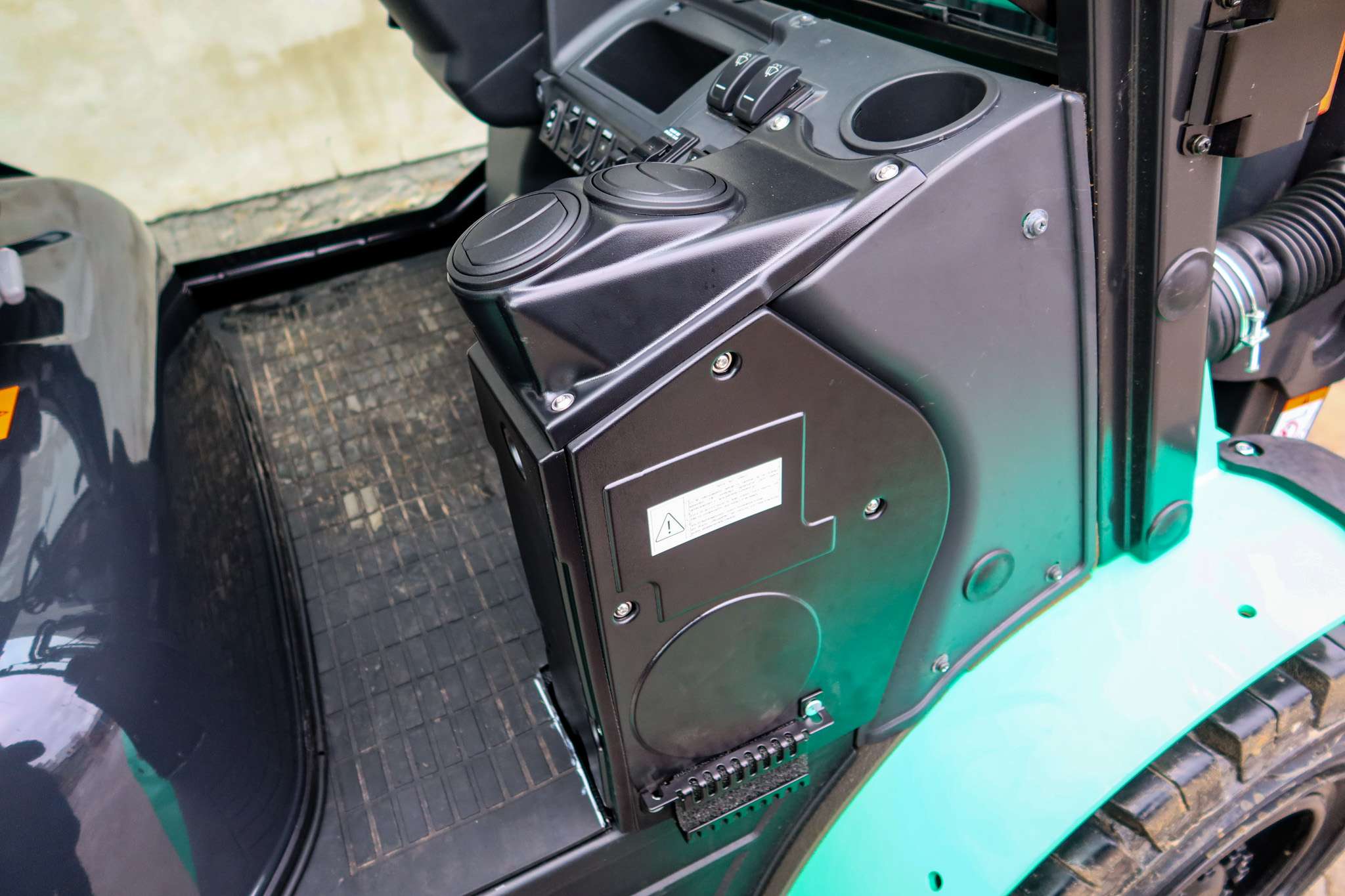 Die Kabine für dieses Gabelstaplermodell ist eine moderne Lösung, die eine leichte Konstruktion mit einer großen Glasfläche kombiniert und so hervorragende Sicht sowie Arbeitskomfort unter allen Witterungsbedingungen garantiert. Das ergonomische Design, langlebige Materialien und präzise Verarbeitung sorgen dafür, dass die Kabine nicht nur Sicherheit bietet, sondern auch höchsten Komfort selbst in den anspruchsvollsten Umgebungen gewährleistet.