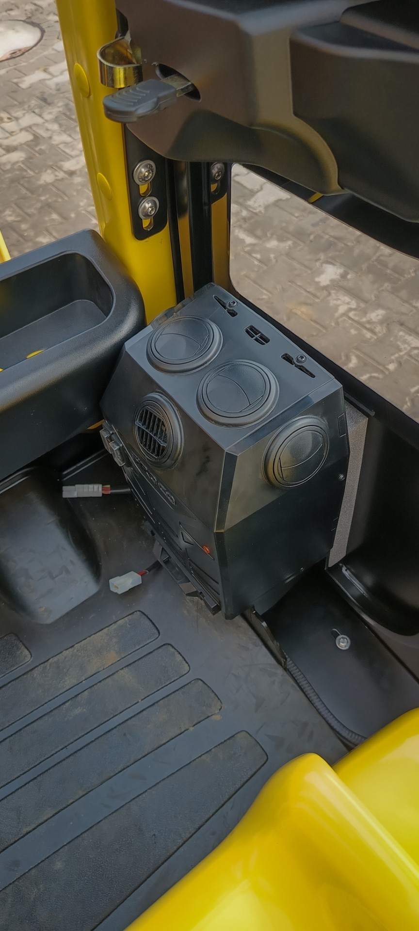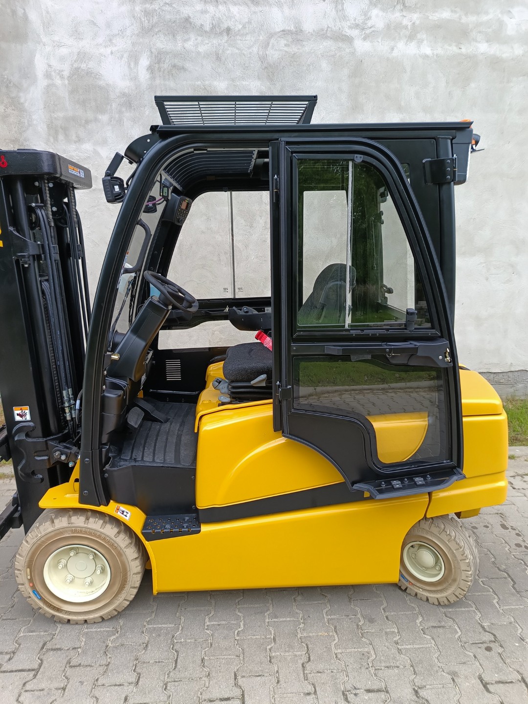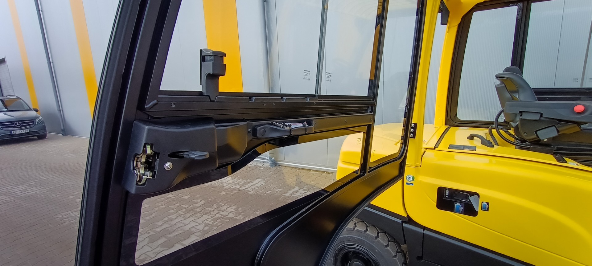 Die Kabine für dieses Gabelstaplermodell ist eine moderne Lösung, die Leichtigkeit der Konstruktion mit einer großen Glasfläche kombiniert, was hervorragende Sicht und Arbeitskomfort unter allen Wetterbedingungen garantiert. Das ergonomische Design, langlebige Materialien und präzise Verarbeitung sorgen dafür, dass die Kabine nicht nur Sicherheit bietet, sondern auch höchsten Komfort, selbst in den anspruchsvollsten Umgebungen.