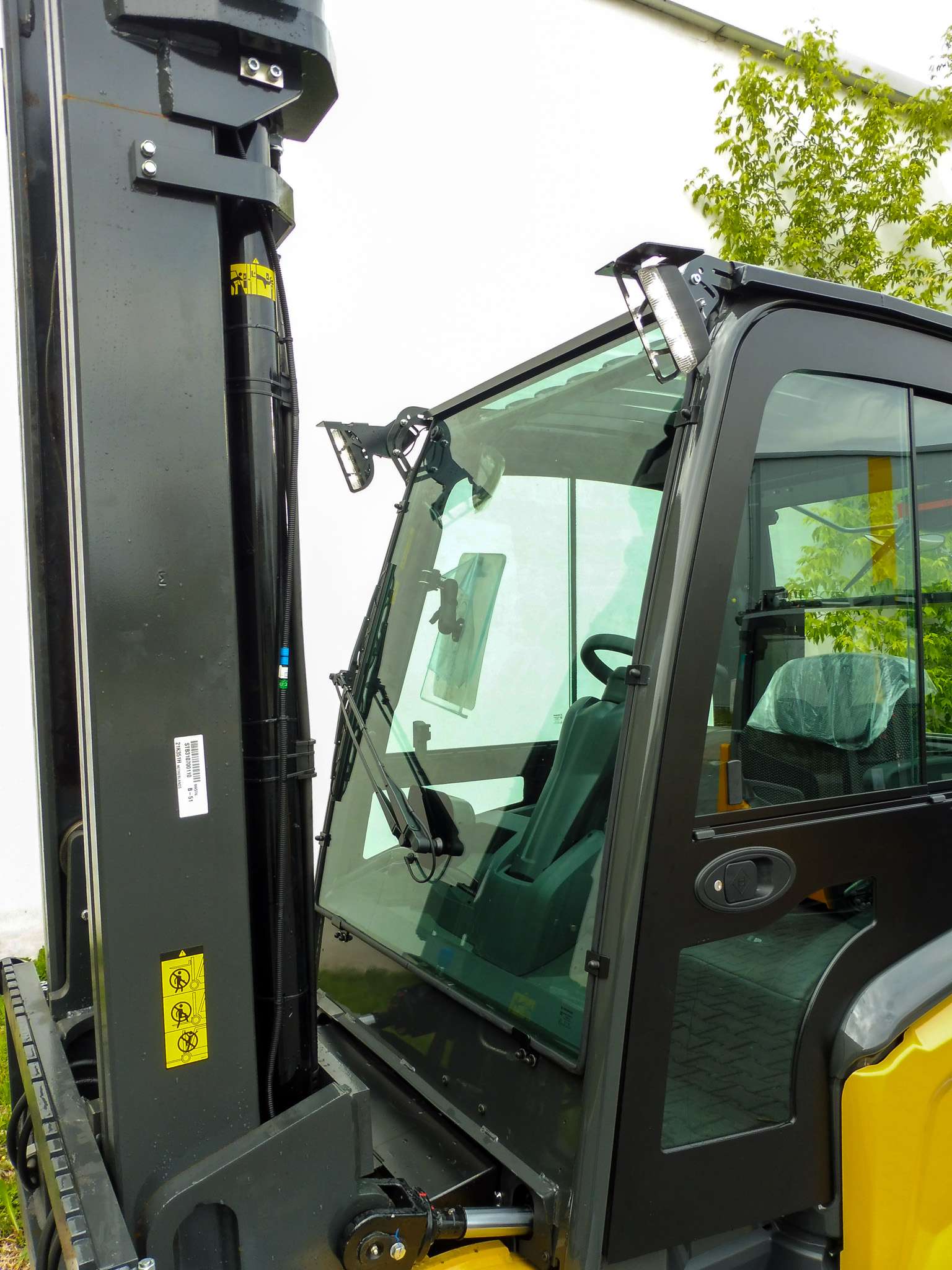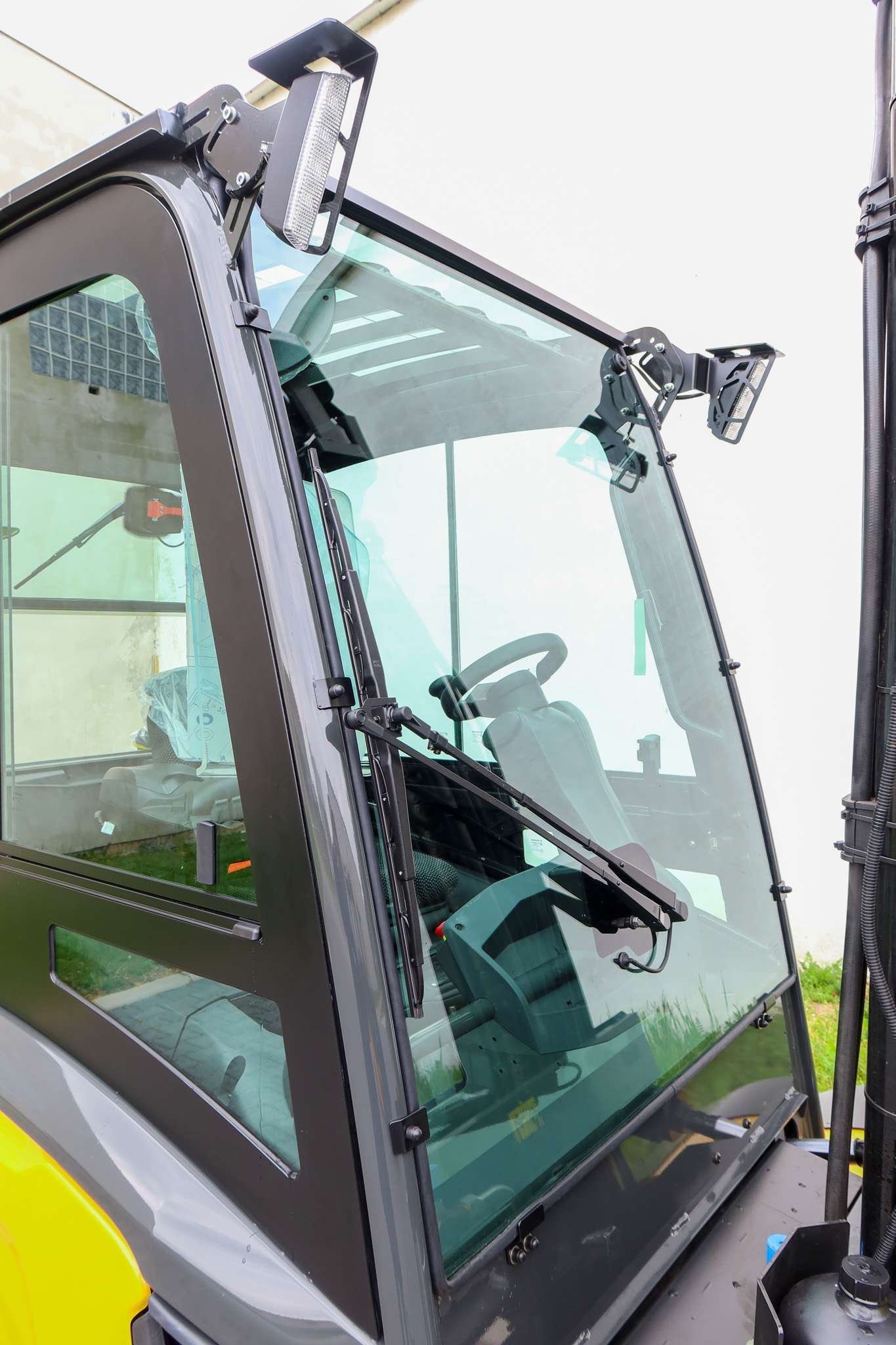 Die Kabine für dieses Gabelstaplermodell ist eine moderne Lösung, die eine leichte Konstruktion mit einer großen Glasfläche kombiniert und so hervorragende Sicht sowie Arbeitskomfort unter allen Witterungsbedingungen garantiert. Das ergonomische Design, langlebige Materialien und präzise Verarbeitung sorgen dafür, dass die Kabine nicht nur Sicherheit bietet, sondern auch höchsten Komfort selbst in den anspruchsvollsten Umgebungen gewährleistet.