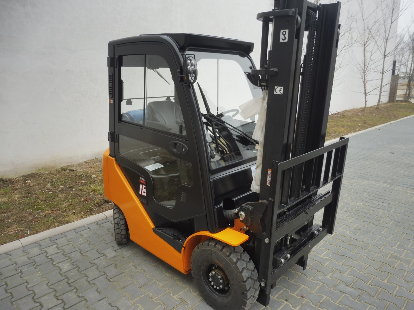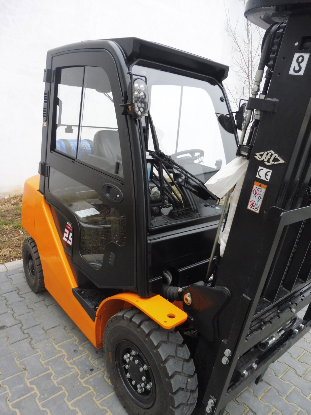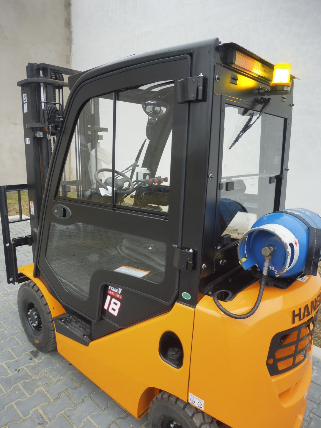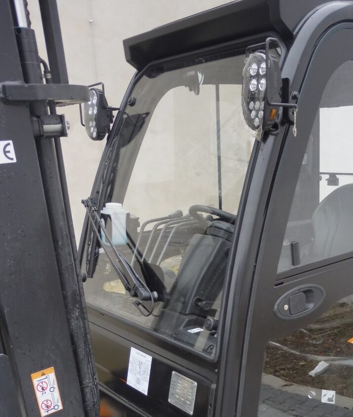 Die Kabine für dieses Gabelstaplermodell ist eine moderne Lösung, die Leichtigkeit der Konstruktion mit einer großen Glasfläche kombiniert, was hervorragende Sicht und Arbeitskomfort unter allen Wetterbedingungen garantiert. Das ergonomische Design, langlebige Materialien und präzise Verarbeitung sorgen dafür, dass die Kabine nicht nur Sicherheit bietet, sondern auch höchsten Komfort, selbst in den anspruchsvollsten Umgebungen.