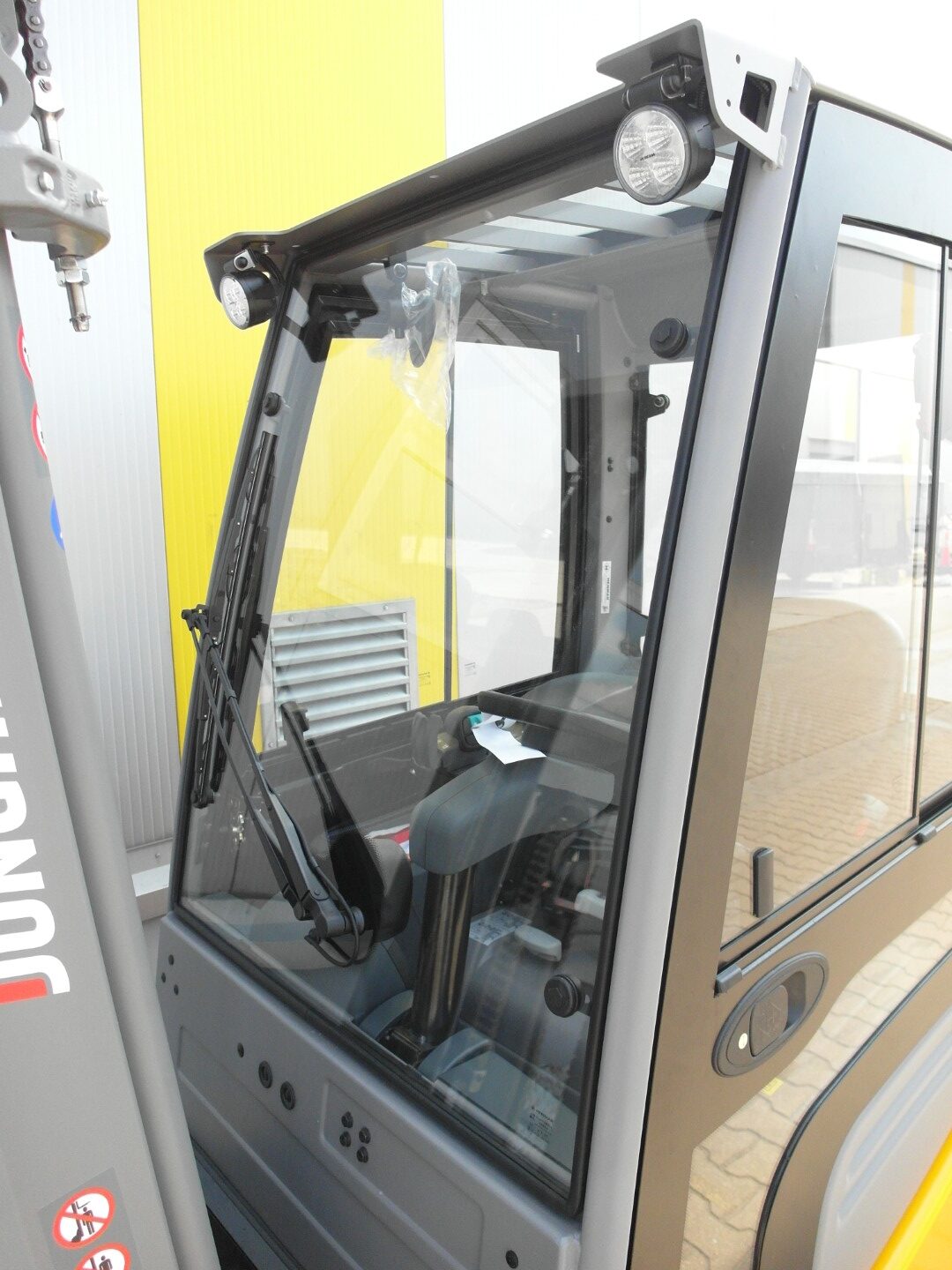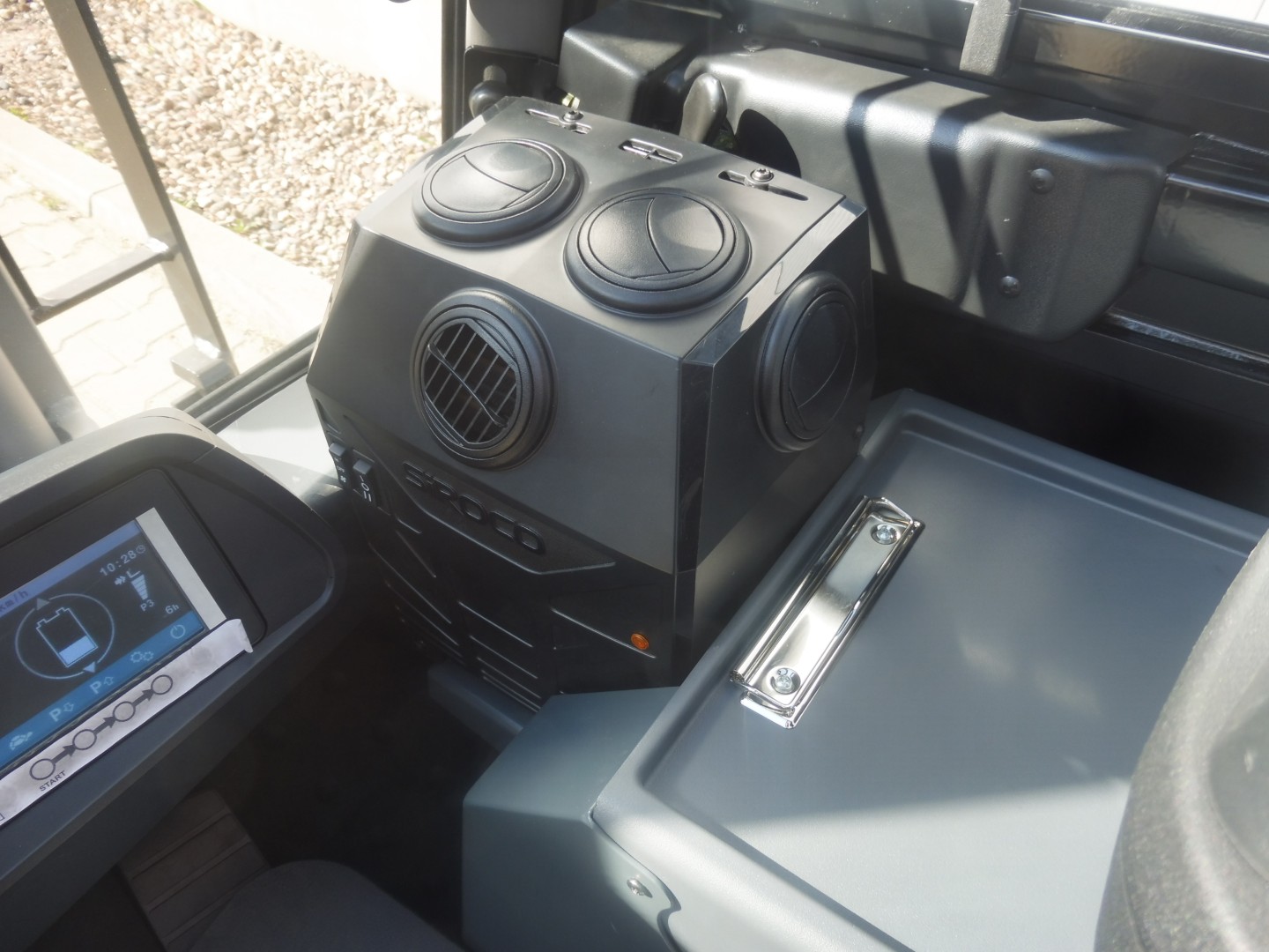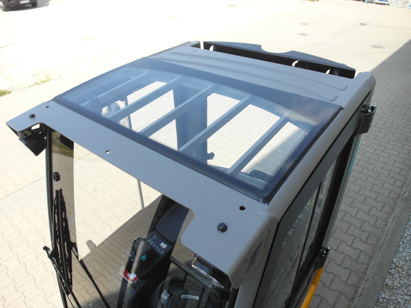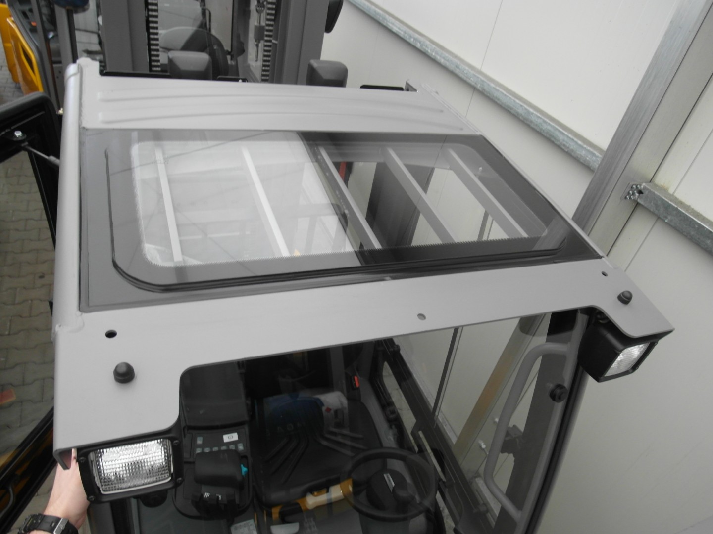 Die Kabine für dieses Gabelstaplermodell ist eine moderne Lösung, die Leichtigkeit der Konstruktion mit einer großen Glasfläche kombiniert, was hervorragende Sicht und Arbeitskomfort unter allen Wetterbedingungen garantiert. Das ergonomische Design, langlebige Materialien und präzise Verarbeitung sorgen dafür, dass die Kabine nicht nur Sicherheit bietet, sondern auch höchsten Komfort, selbst in den anspruchsvollsten Umgebungen.