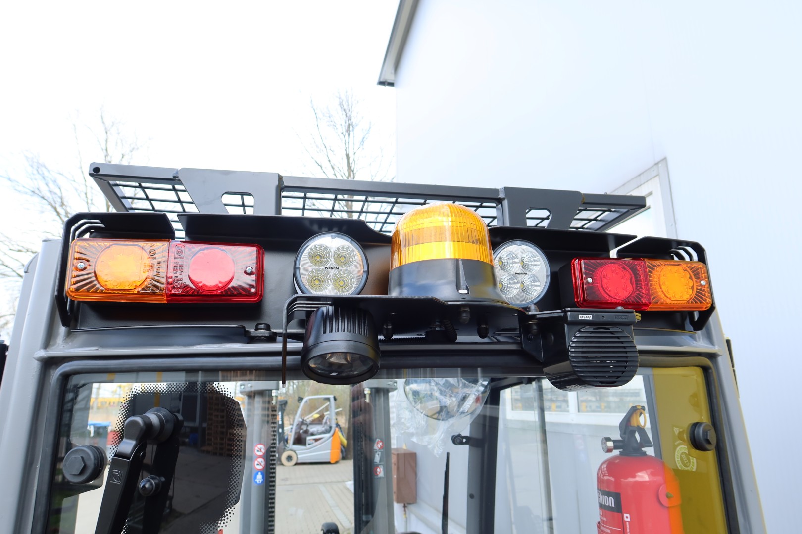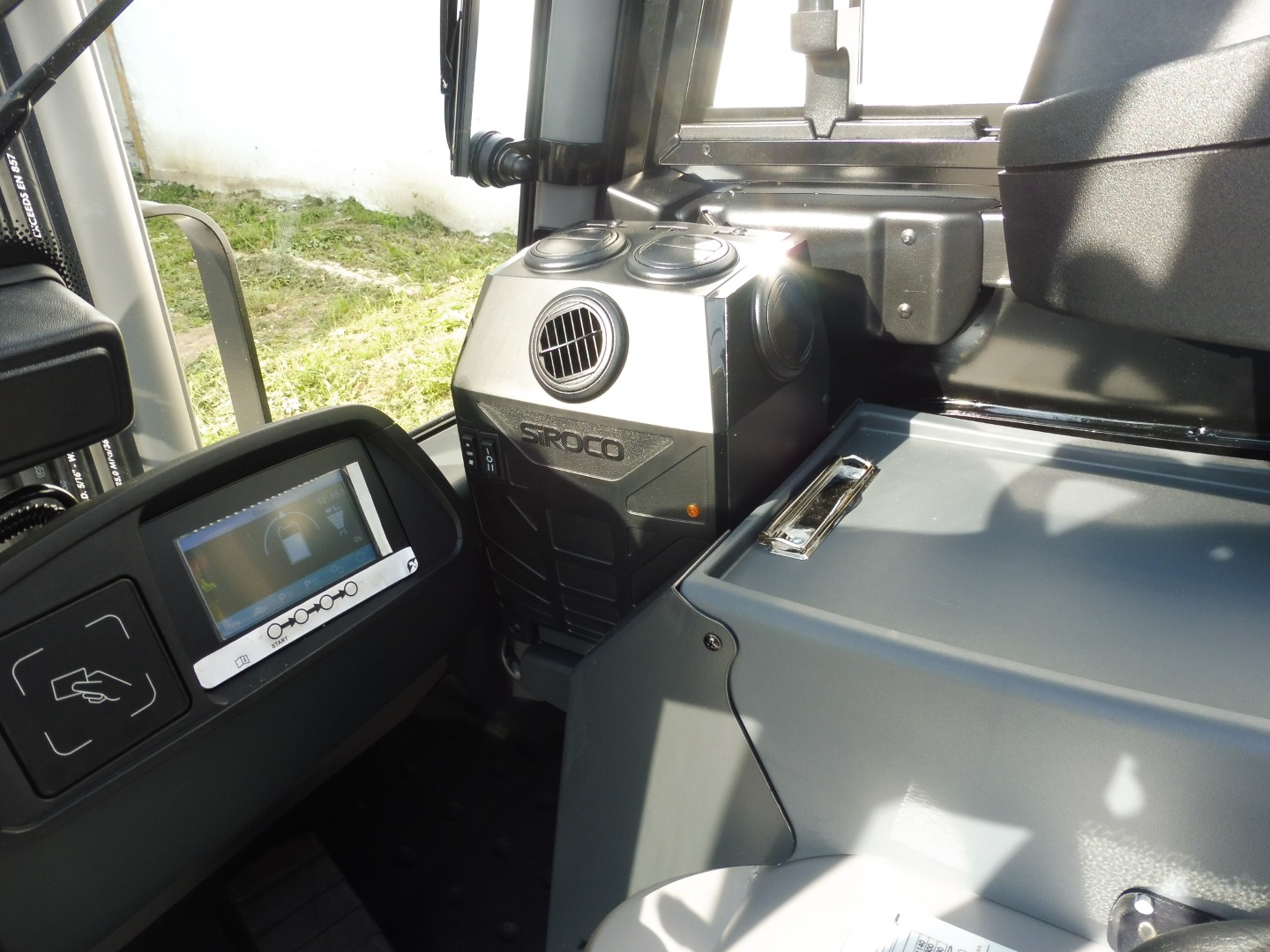 Die Kabine für dieses Gabelstaplermodell ist eine moderne Lösung, die Leichtigkeit der Konstruktion mit einer großen Glasfläche kombiniert, was hervorragende Sicht und Arbeitskomfort unter allen Wetterbedingungen garantiert. Das ergonomische Design, langlebige Materialien und präzise Verarbeitung sorgen dafür, dass die Kabine nicht nur Sicherheit bietet, sondern auch höchsten Komfort, selbst in den anspruchsvollsten Umgebungen.