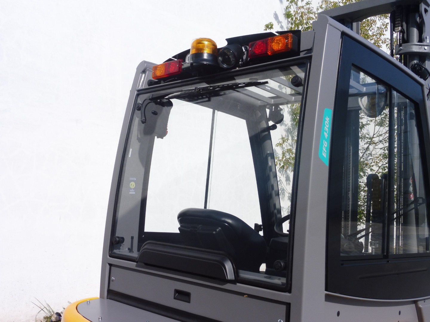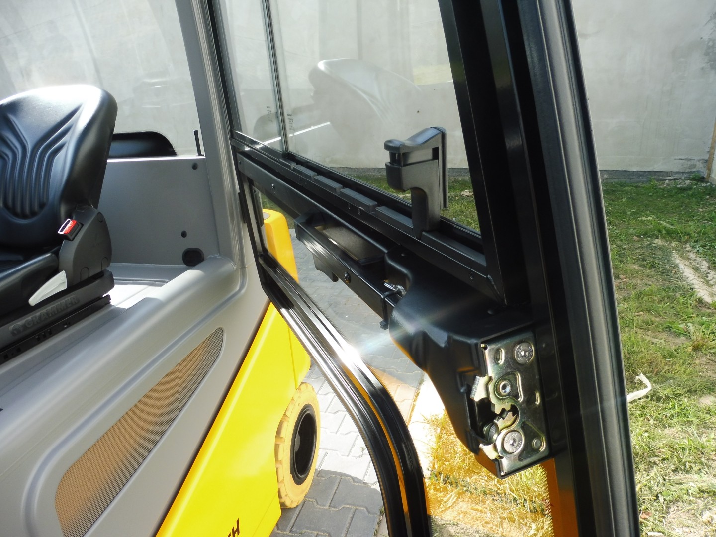 Die Kabine für dieses Gabelstaplermodell ist eine moderne Lösung, die Leichtigkeit der Konstruktion mit einer großen Glasfläche kombiniert, was hervorragende Sicht und Arbeitskomfort unter allen Wetterbedingungen garantiert. Das ergonomische Design, langlebige Materialien und präzise Verarbeitung sorgen dafür, dass die Kabine nicht nur Sicherheit bietet, sondern auch höchsten Komfort, selbst in den anspruchsvollsten Umgebungen.