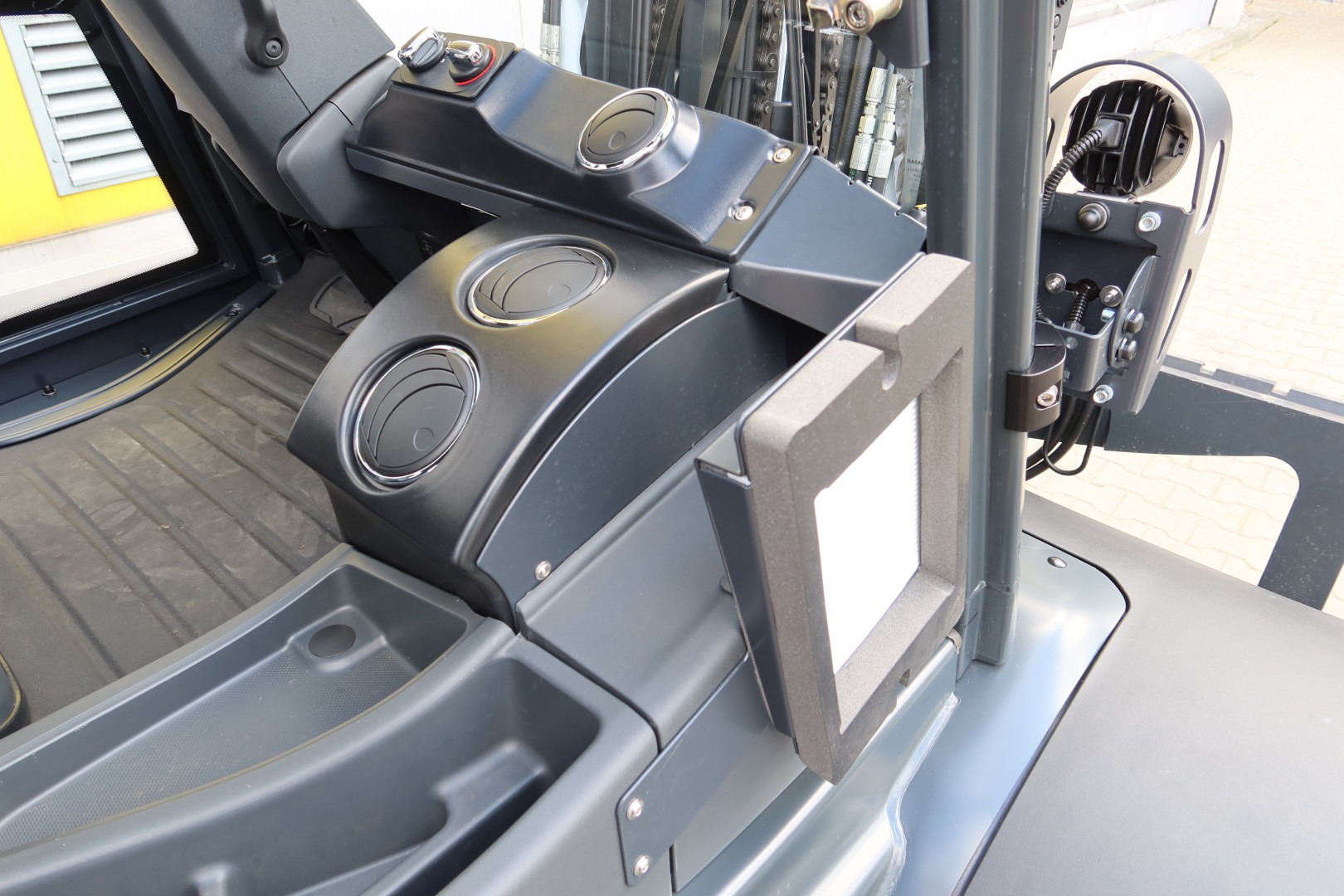 Die Kabine für dieses Gabelstaplermodell ist eine moderne Lösung, die eine leichte Konstruktion mit einer großen Glasfläche kombiniert und so hervorragende Sicht sowie Arbeitskomfort unter allen Witterungsbedingungen garantiert. Das ergonomische Design, langlebige Materialien und präzise Verarbeitung sorgen dafür, dass die Kabine nicht nur Sicherheit bietet, sondern auch höchsten Komfort selbst in den anspruchsvollsten Umgebungen gewährleistet.