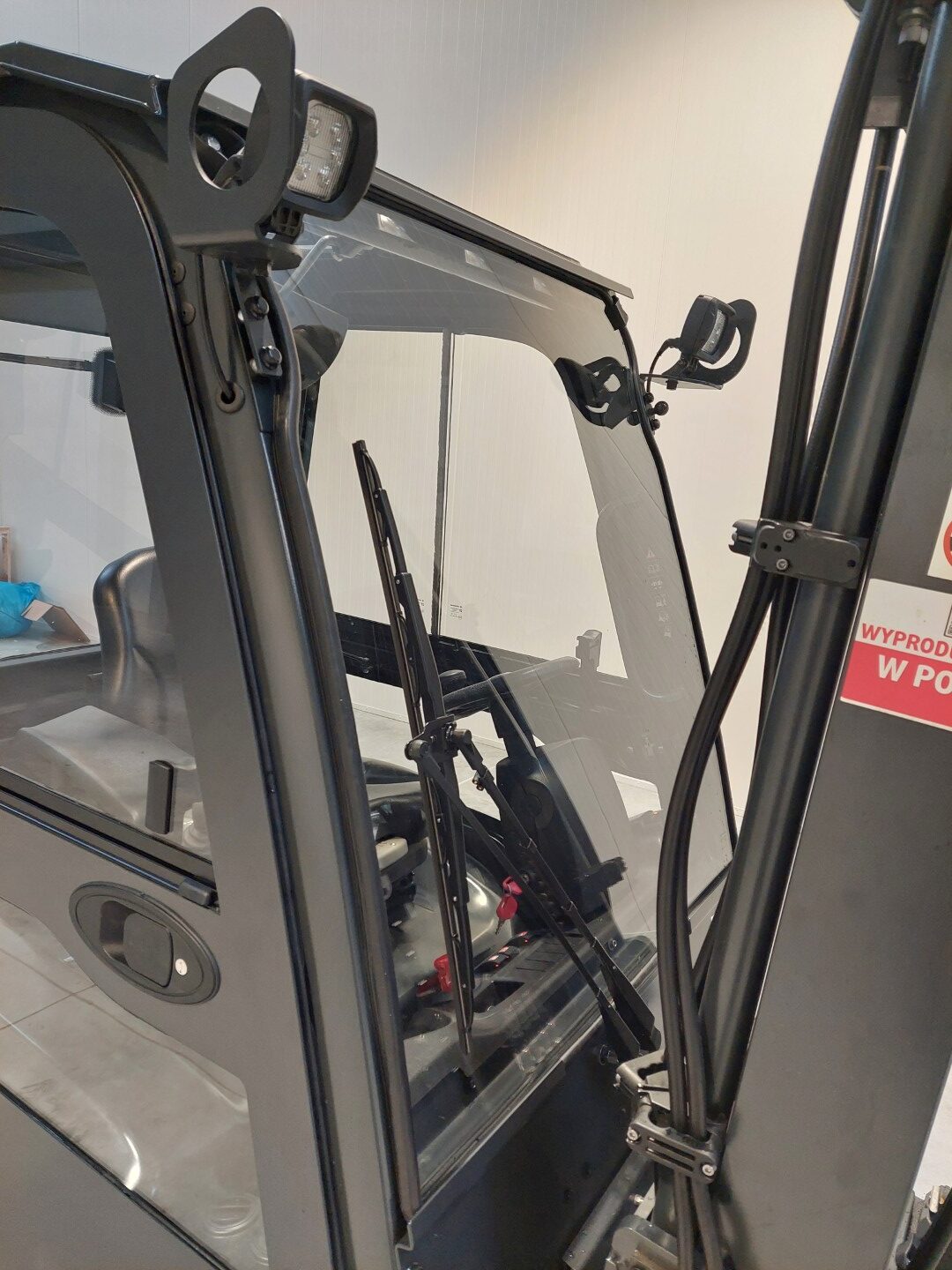 Die Kabine für dieses Gabelstaplermodell ist eine moderne Lösung, die eine leichte Konstruktion mit einer großen Glasfläche kombiniert und so hervorragende Sicht sowie Arbeitskomfort unter allen Witterungsbedingungen garantiert. Das ergonomische Design, langlebige Materialien und präzise Verarbeitung sorgen dafür, dass die Kabine nicht nur Sicherheit bietet, sondern auch höchsten Komfort selbst in den anspruchsvollsten Umgebungen gewährleistet.