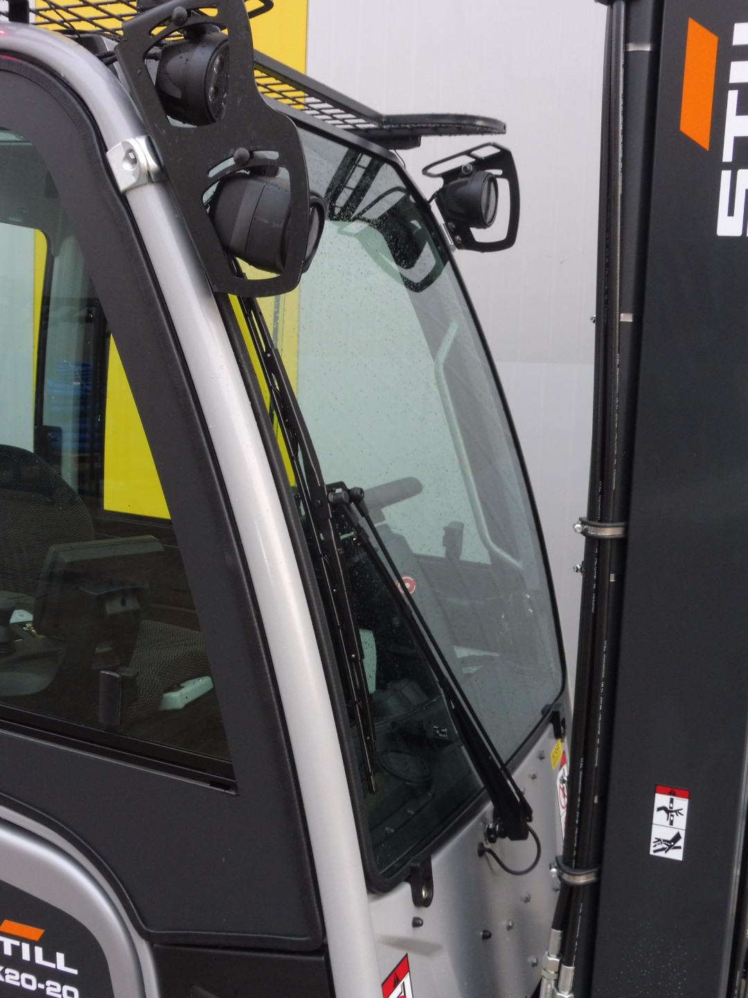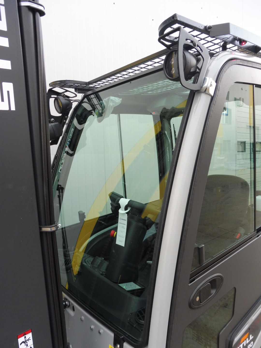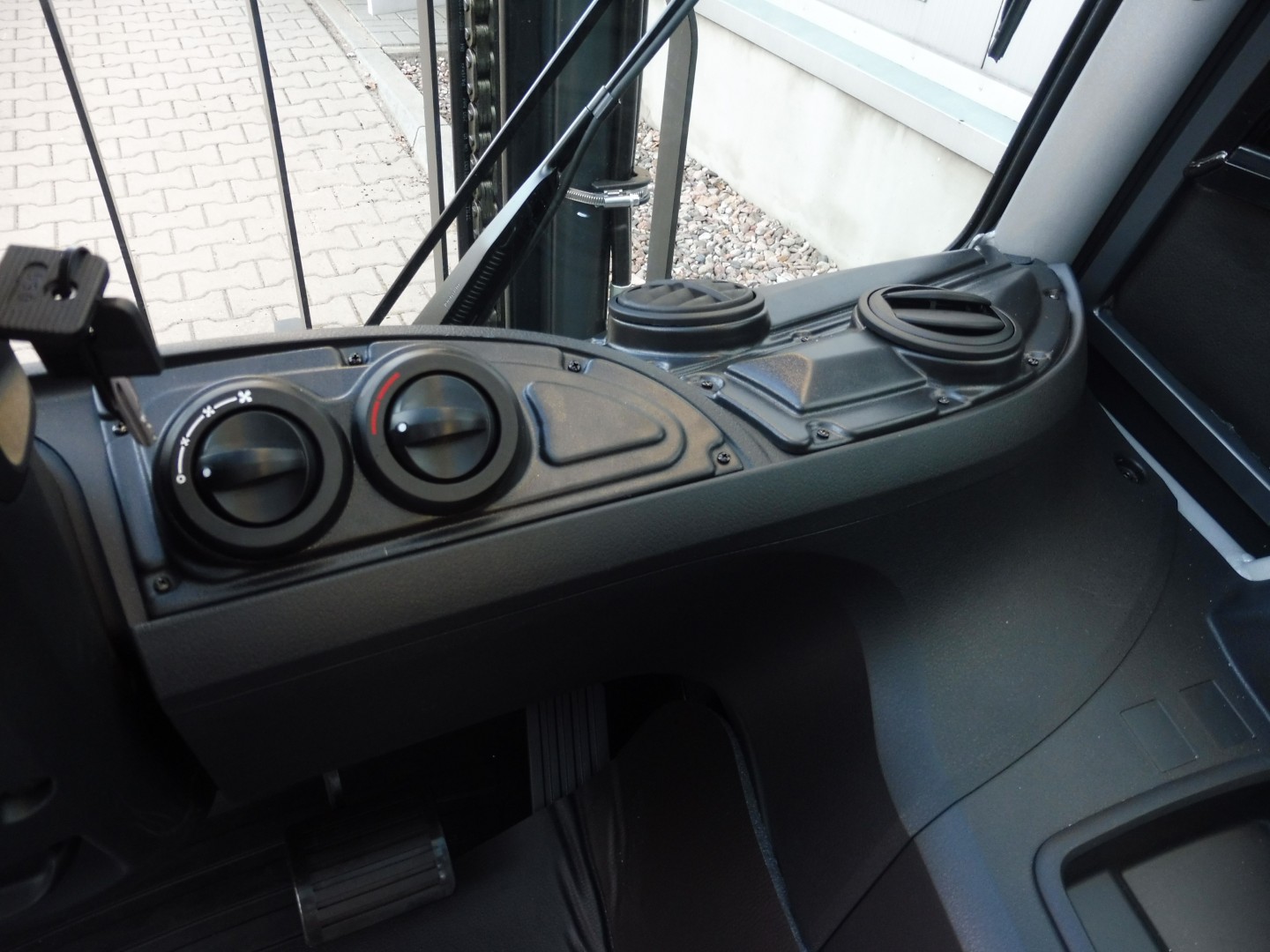 Die Kabine für dieses Gabelstaplermodell ist eine moderne Lösung, die Leichtigkeit der Konstruktion mit einer großen Glasfläche kombiniert, was hervorragende Sicht und Arbeitskomfort unter allen Wetterbedingungen garantiert. Das ergonomische Design, langlebige Materialien und präzise Verarbeitung sorgen dafür, dass die Kabine nicht nur Sicherheit bietet, sondern auch höchsten Komfort, selbst in den anspruchsvollsten Umgebungen.