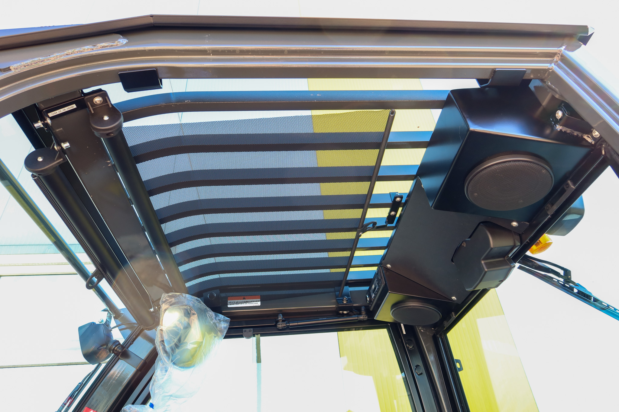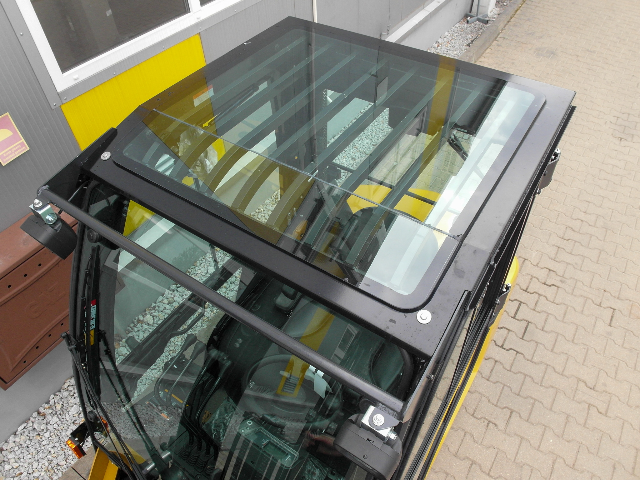 Das Dachfenster der Kabine besteht aus gehärtetem Glas, das mit einer Sicherheitsfolie beschichtet ist, was dem Fahrer maximalen Schutz bietet. Im Falle einer Beschädigung zerfällt es nicht in kleine Fragmente, sondern behält seine Form bei, wodurch das Verletzungsrisiko für den Fahrer minimiert wird.