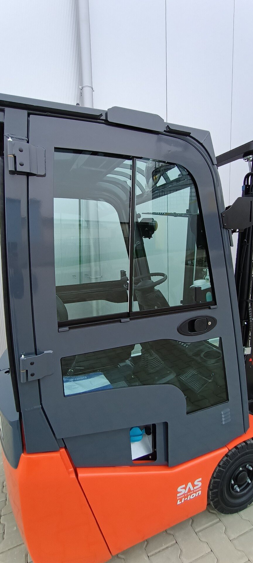 Die Kabine für dieses Gabelstaplermodell ist eine moderne Lösung, die Leichtigkeit der Konstruktion mit einer großen Glasfläche kombiniert, was hervorragende Sicht und Arbeitskomfort unter allen Wetterbedingungen garantiert. Das ergonomische Design, langlebige Materialien und präzise Verarbeitung sorgen dafür, dass die Kabine nicht nur Sicherheit bietet, sondern auch höchsten Komfort, selbst in den anspruchsvollsten Umgebungen.