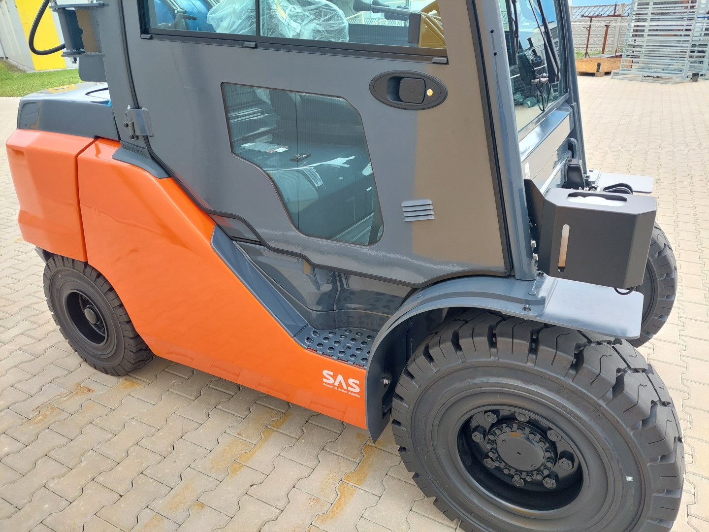 Die Kabine für dieses Gabelstaplermodell ist eine moderne Lösung, die Leichtigkeit der Konstruktion mit einer großen Glasfläche kombiniert, was hervorragende Sicht und Arbeitskomfort unter allen Wetterbedingungen garantiert. Das ergonomische Design, langlebige Materialien und präzise Verarbeitung sorgen dafür, dass die Kabine nicht nur Sicherheit bietet, sondern auch höchsten Komfort, selbst in den anspruchsvollsten Umgebungen.