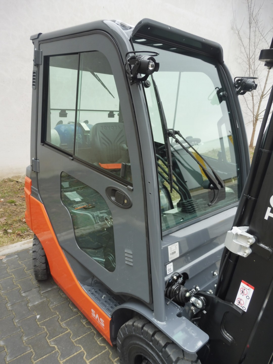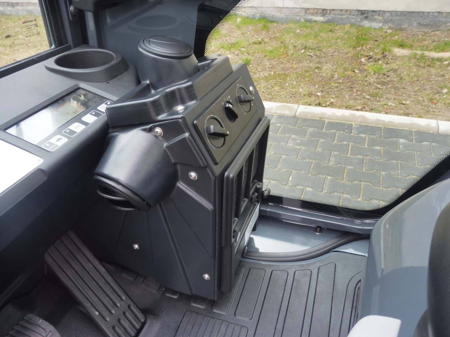Die Kabine für dieses Gabelstaplermodell ist eine moderne Lösung, die Leichtigkeit der Konstruktion mit einer großen Glasfläche kombiniert, was hervorragende Sicht und Arbeitskomfort unter allen Wetterbedingungen garantiert. Das ergonomische Design, langlebige Materialien und präzise Verarbeitung sorgen dafür, dass die Kabine nicht nur Sicherheit bietet, sondern auch höchsten Komfort, selbst in den anspruchsvollsten Umgebungen.