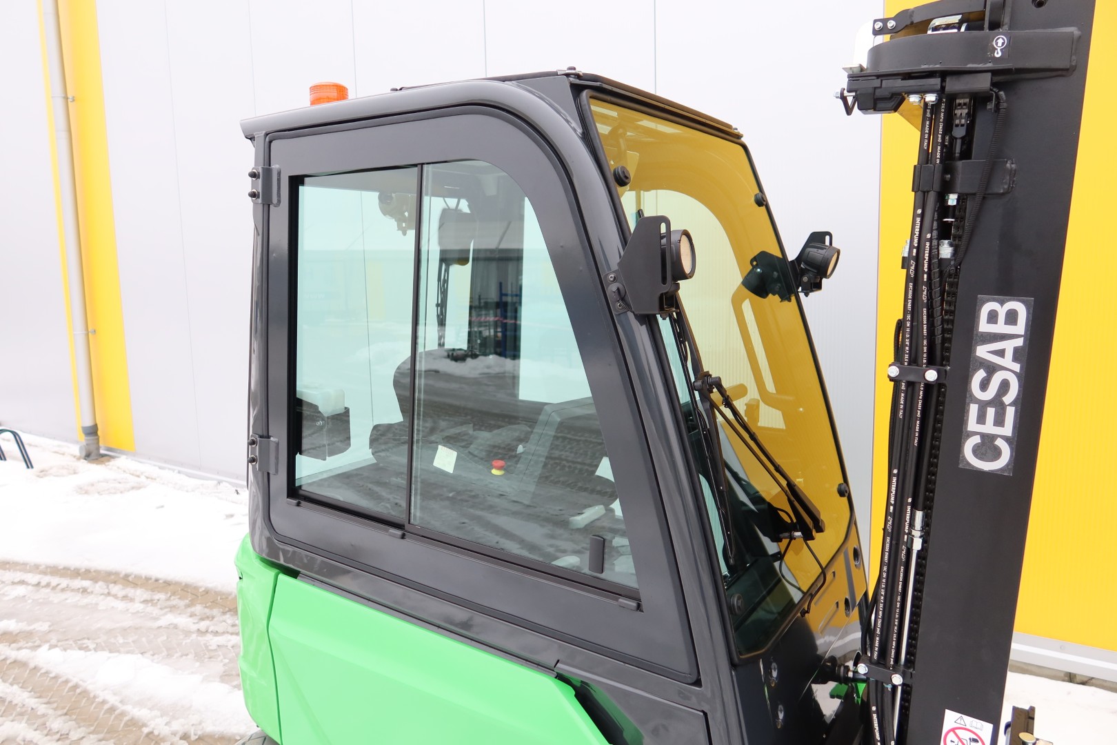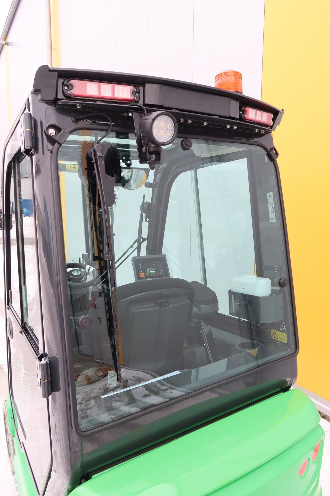 Die Kabine für dieses Gabelstaplermodell ist eine moderne Lösung, die Leichtigkeit der Konstruktion mit einer großen Glasfläche kombiniert, was hervorragende Sicht und Arbeitskomfort unter allen Wetterbedingungen garantiert. Das ergonomische Design, langlebige Materialien und präzise Verarbeitung sorgen dafür, dass die Kabine nicht nur Sicherheit bietet, sondern auch höchsten Komfort, selbst in den anspruchsvollsten Umgebungen.