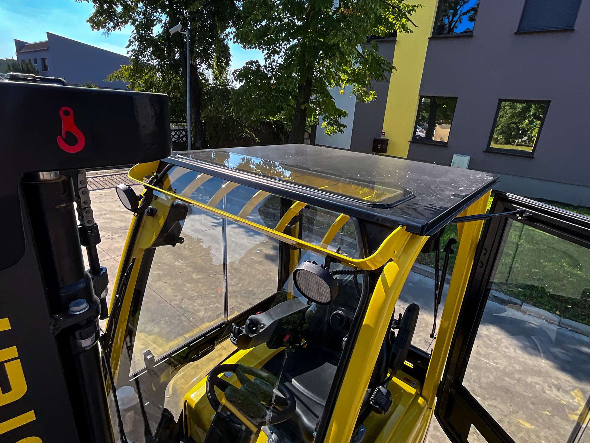 Die Kabine für dieses Gabelstaplermodell ist eine moderne Lösung, die Leichtigkeit der Konstruktion mit einer großen Glasfläche kombiniert, was hervorragende Sicht und Arbeitskomfort unter allen Wetterbedingungen garantiert. Das ergonomische Design, langlebige Materialien und präzise Verarbeitung sorgen dafür, dass die Kabine nicht nur Sicherheit bietet, sondern auch höchsten Komfort, selbst in den anspruchsvollsten Umgebungen.