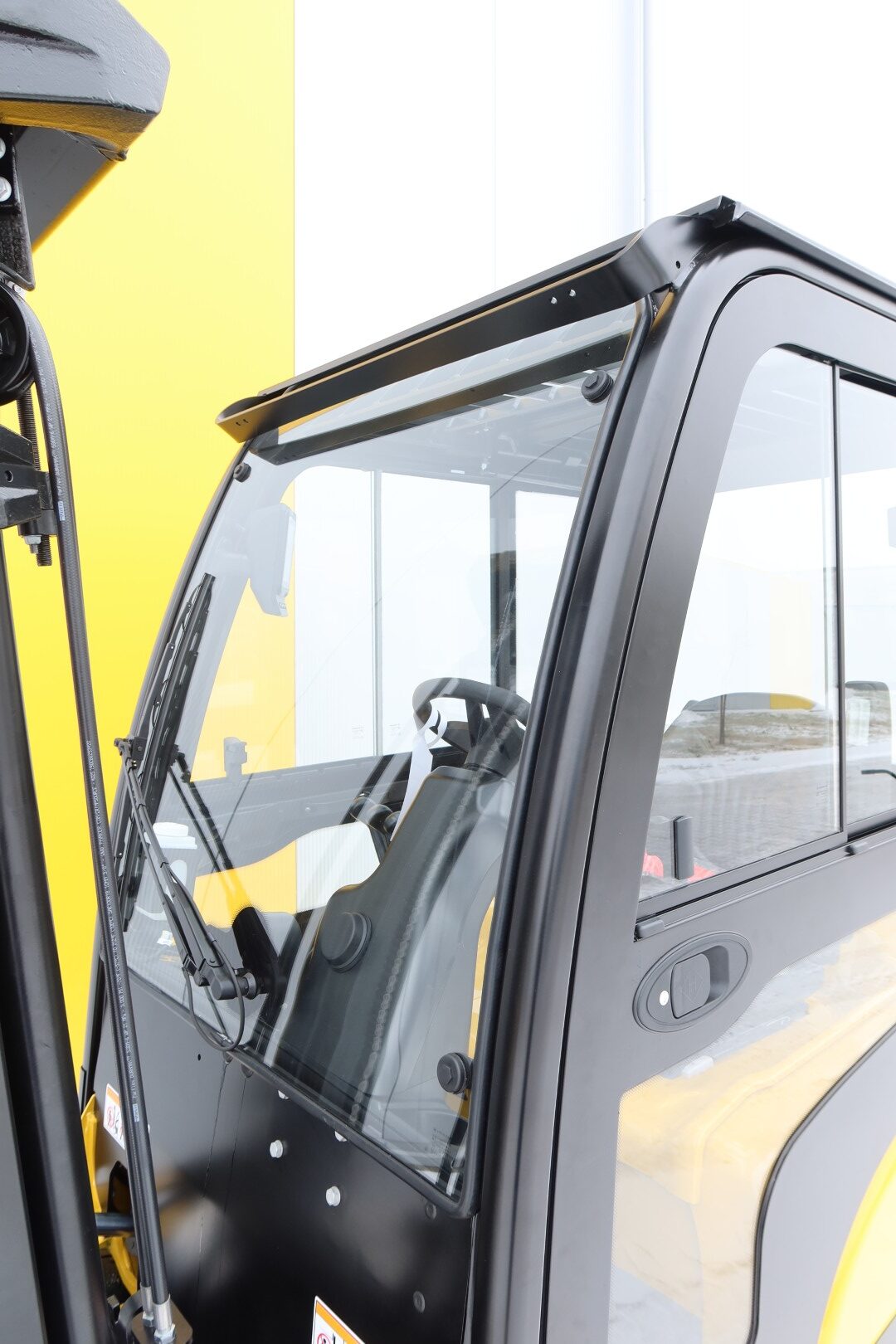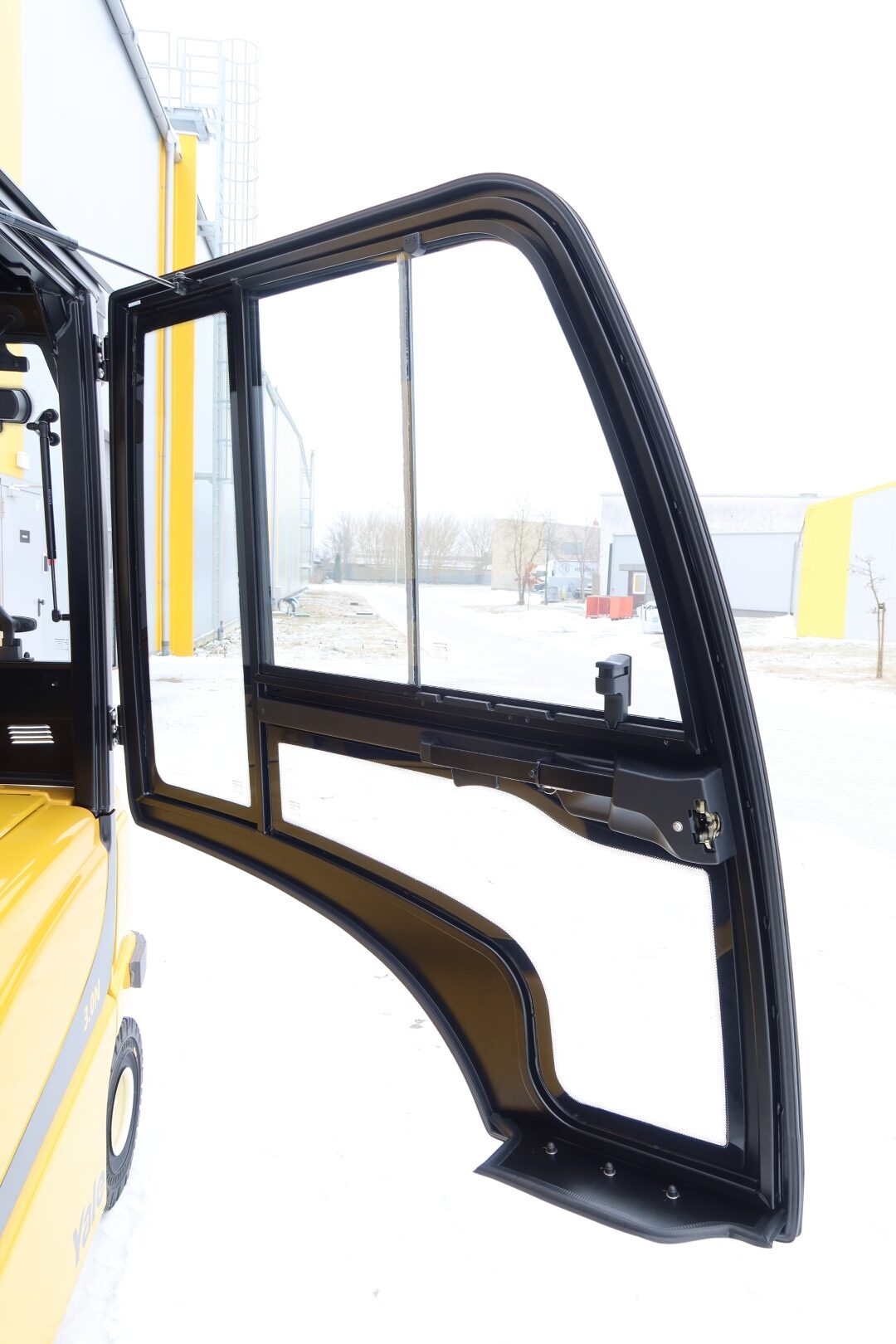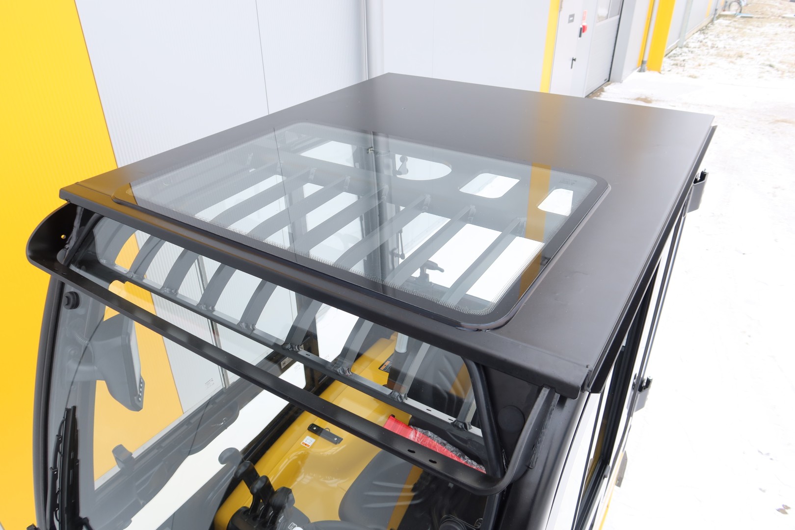 Die Kabine für dieses Gabelstaplermodell ist eine moderne Lösung, die Leichtigkeit der Konstruktion mit einer großen Glasfläche kombiniert, was hervorragende Sicht und Arbeitskomfort unter allen Wetterbedingungen garantiert. Das ergonomische Design, langlebige Materialien und präzise Verarbeitung sorgen dafür, dass die Kabine nicht nur Sicherheit bietet, sondern auch höchsten Komfort, selbst in den anspruchsvollsten Umgebungen.