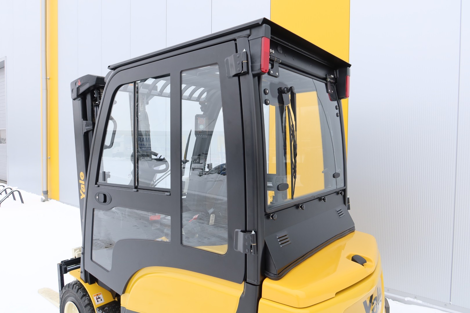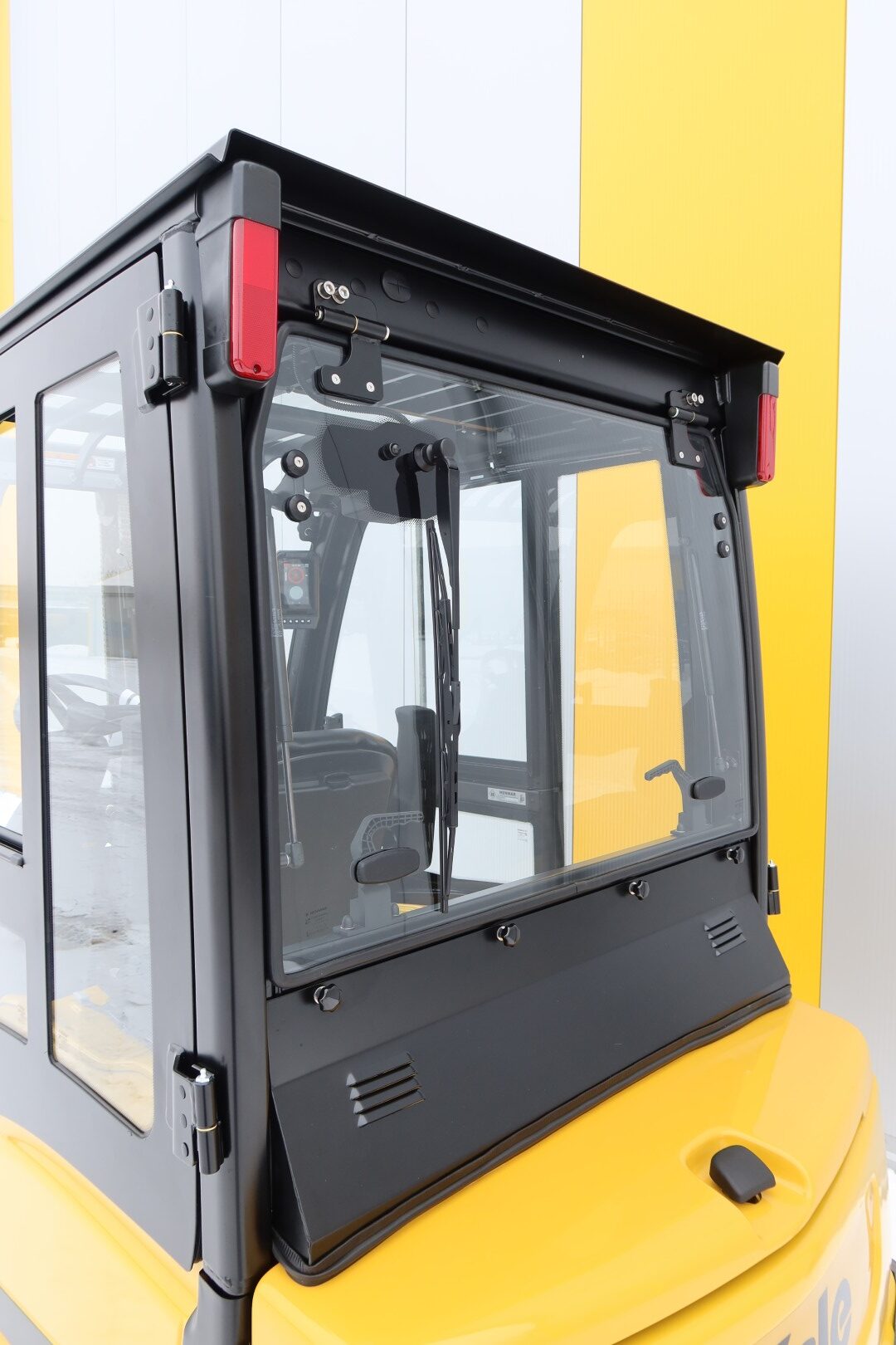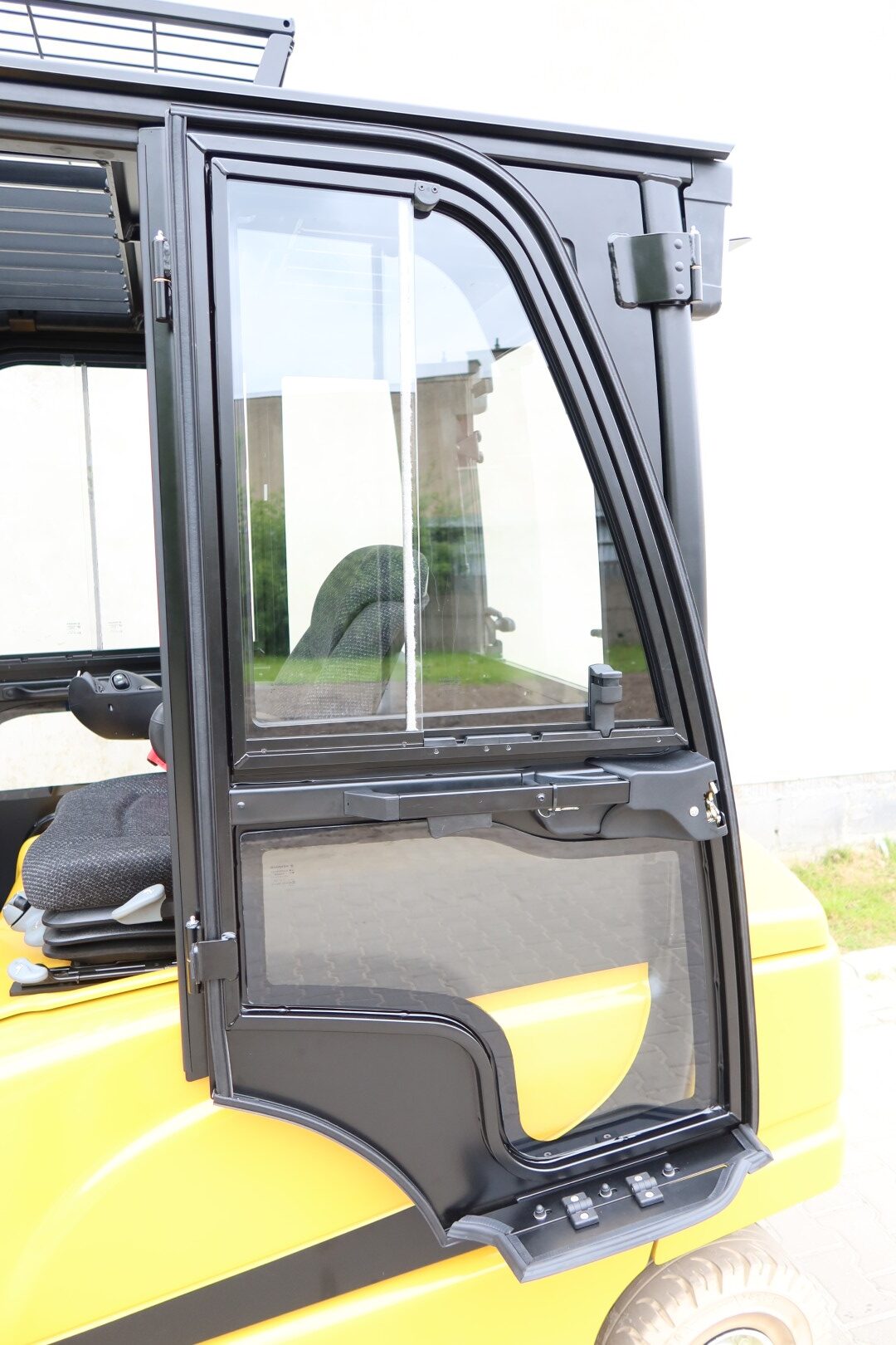 Die Kabine für dieses Gabelstaplermodell ist eine moderne Lösung, die Leichtigkeit der Konstruktion mit einer großen Glasfläche kombiniert, was hervorragende Sicht und Arbeitskomfort unter allen Wetterbedingungen garantiert. Das ergonomische Design, langlebige Materialien und präzise Verarbeitung sorgen dafür, dass die Kabine nicht nur Sicherheit bietet, sondern auch höchsten Komfort, selbst in den anspruchsvollsten Umgebungen.