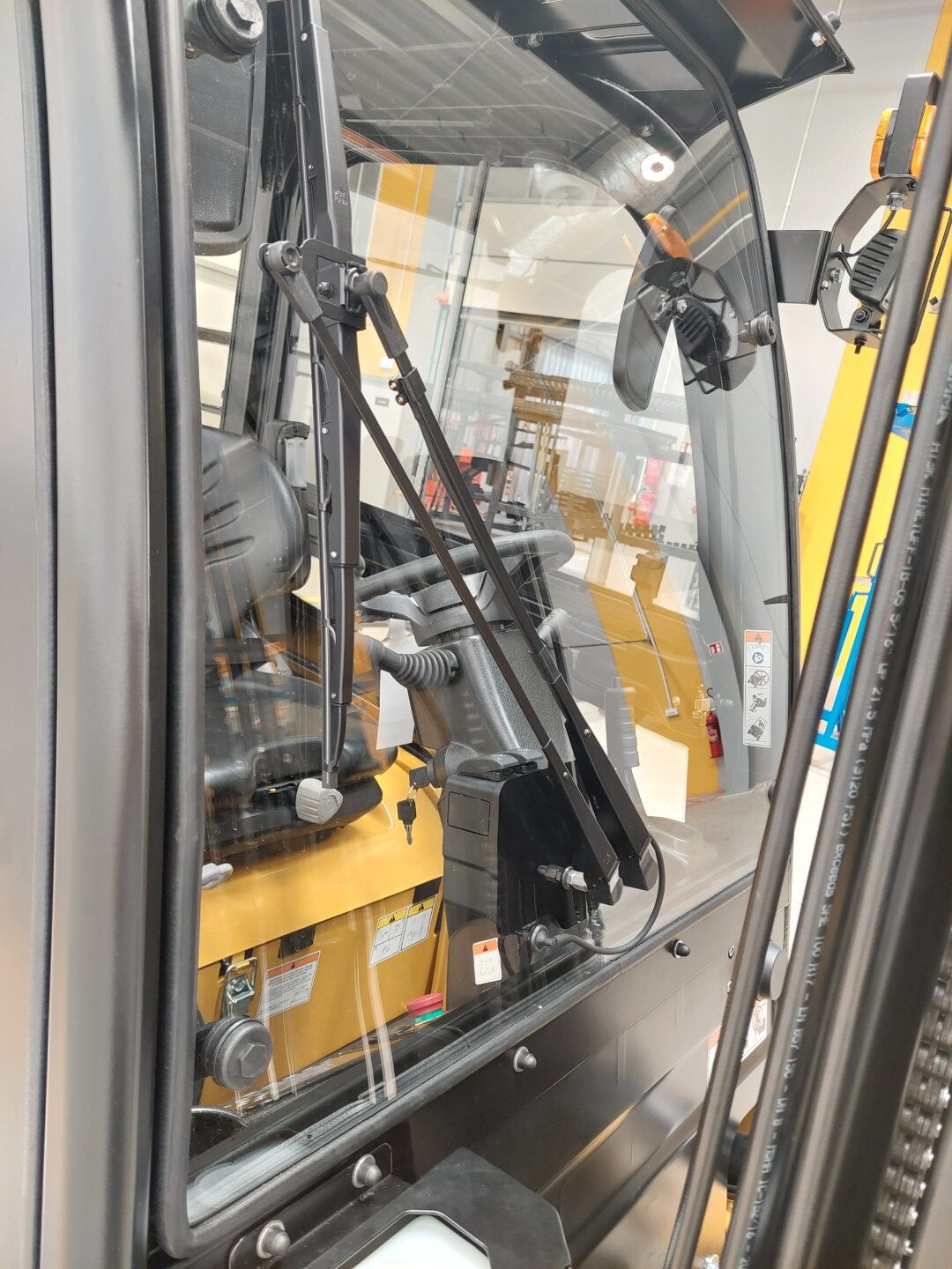 Die Kabine ist standardmäßig mit einer Front- und Heckscheibenwischeranlage mit Spritzdüsen ausgestattet, die bei schwierigen Wetterbedingungen für gute Sicht sorgen. Für noch mehr Arbeitskomfort ist auch ein optionaler Dachwischer verfügbar, der die Reinigung der Dachscheibe erleichtert.