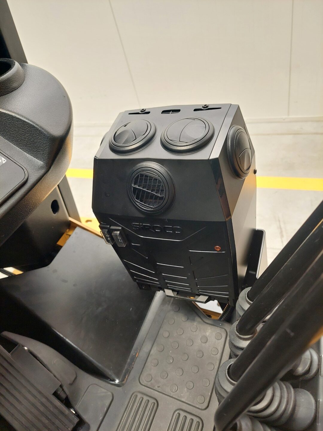 Effiziente Gabelstapler-Kabinenheizung mit einstellbarem Luftstrom und einstellbaren Luftauslässen sorgt für Arbeitskomfort unter allen Bedingungen. Die einstellbaren Luftauslässe ermöglichen eine präzise Lenkung des warmen Luftstroms, so dass der Innenraum schnell aufgeheizt wird und die Scheiben für eine bessere Sicht verdunsten.