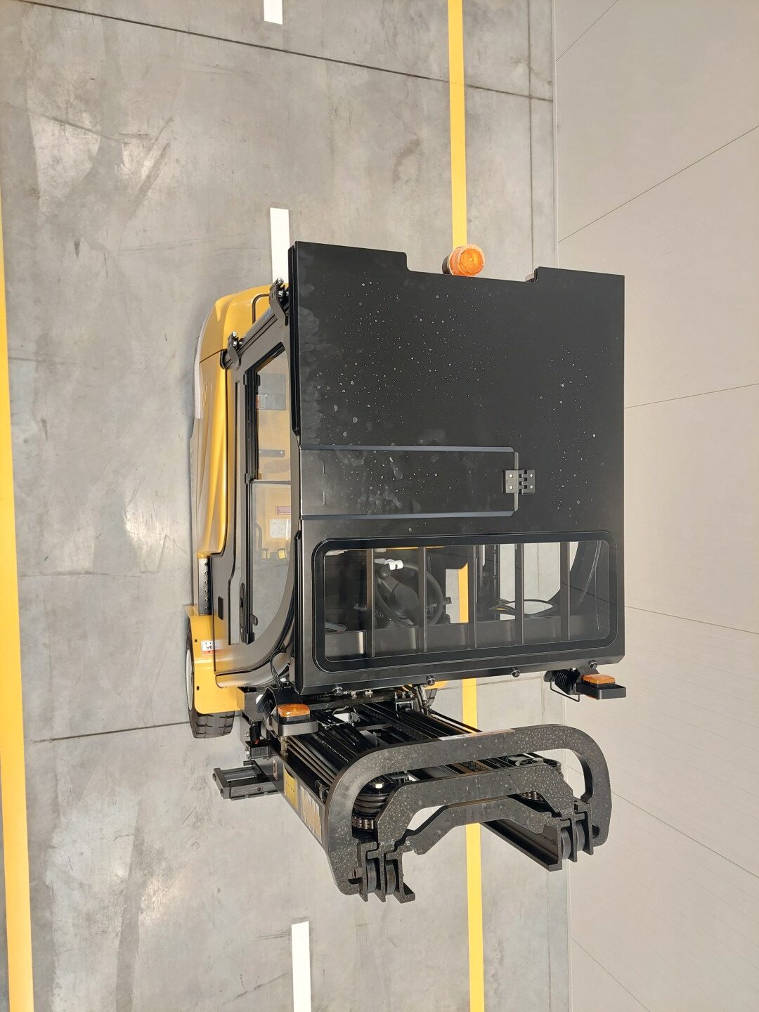 Die Kabine für dieses Gabelstaplermodell ist eine moderne Lösung, die Leichtigkeit der Konstruktion mit einer großen Glasfläche kombiniert, was hervorragende Sicht und Arbeitskomfort unter allen Wetterbedingungen garantiert. Das ergonomische Design, langlebige Materialien und präzise Verarbeitung sorgen dafür, dass die Kabine nicht nur Sicherheit bietet, sondern auch höchsten Komfort, selbst in den anspruchsvollsten Umgebungen.