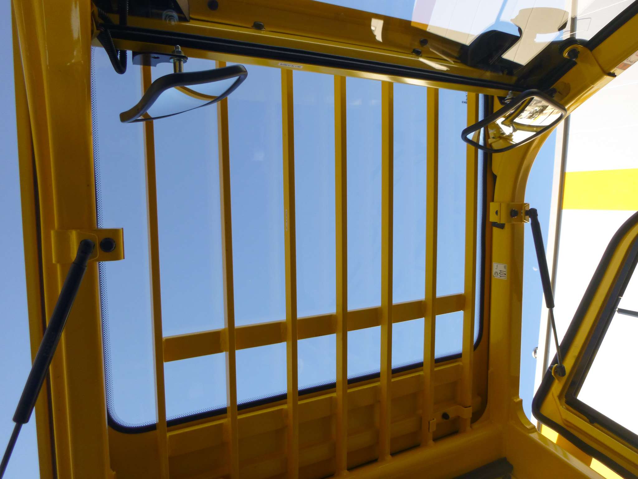 Das Dachfenster der Kabine besteht aus gehärtetem Glas, das mit einer Sicherheitsfolie beschichtet ist, was dem Fahrer maximalen Schutz bietet. Im Falle einer Beschädigung zerfällt es nicht in kleine Fragmente, sondern behält seine Form bei, wodurch das Verletzungsrisiko für den Fahrer minimiert wird.